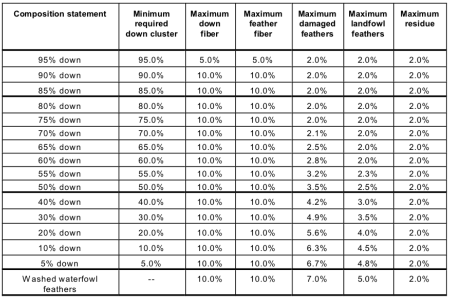 Taiwan Labeling Standards for Washed Down & Feather