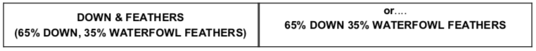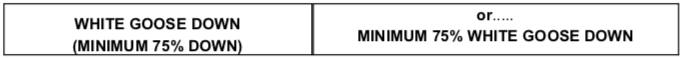 A jacket labeled DOWN must have a minimum of 75% down. This minimum down % should be listed. An example of the correct sewn-in label is:
